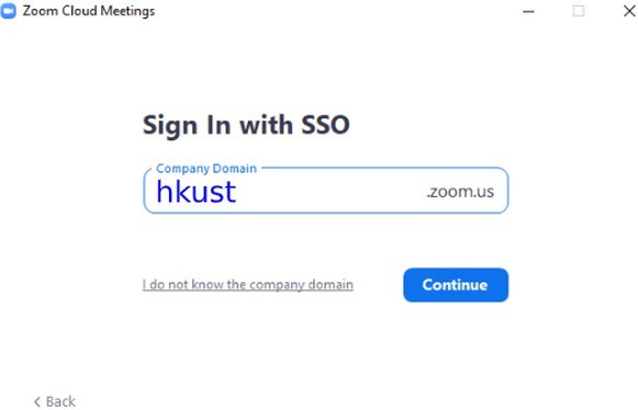 3. On the Sign In with SSO page > Type "hkust" in the Company Domain field > Click “Continue”